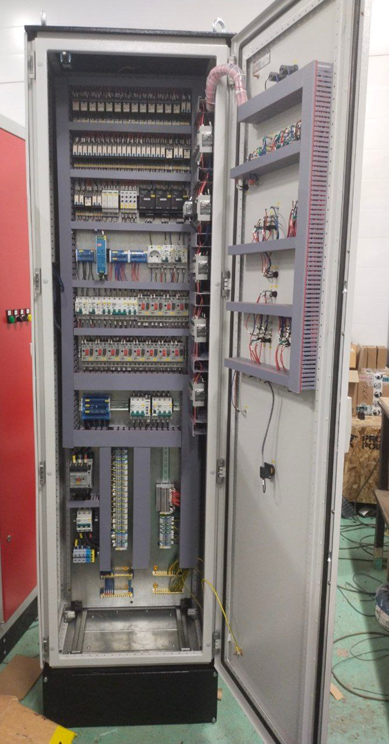 Шкаф управления регулирует работу насосной станции на промышленном предприятии.